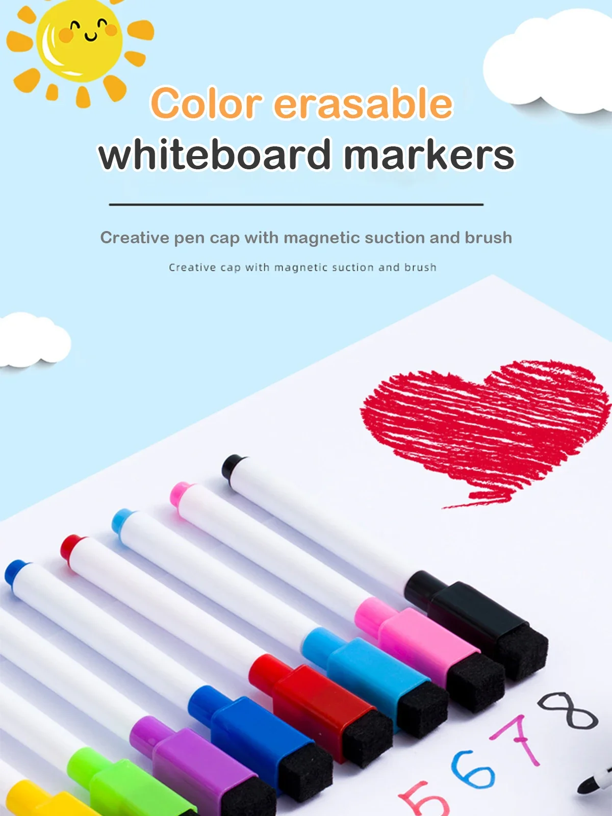 Magnetic Erasable Whiteboard Pen Color Options Blackboard Note Numbering Stationery Office Teaching Supplies for Classroom Use